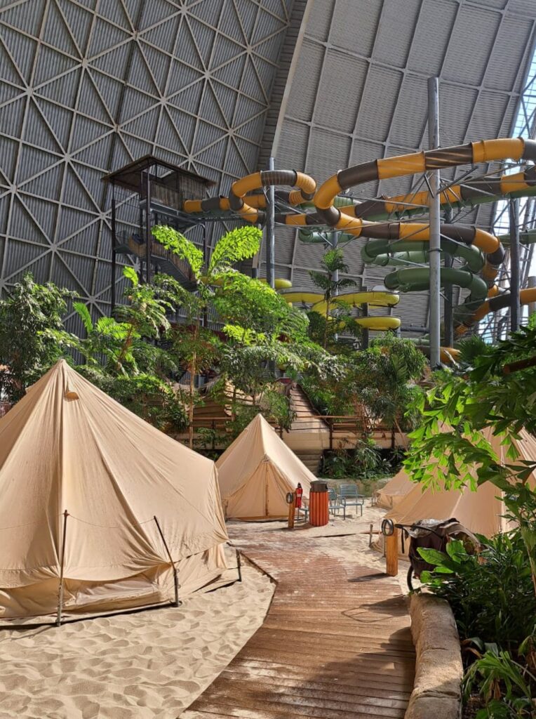 - w namiotach wewnątrz hali – świetna przygoda, bardzo chcieliśmy (ale w wybranym przez nas terminie nie było miejsca dla naszej 5 osobowej osobowej, teraz widzę, że jest możliwość (09.2025) i koszt to ok. 450eur./dobę/ 5osób