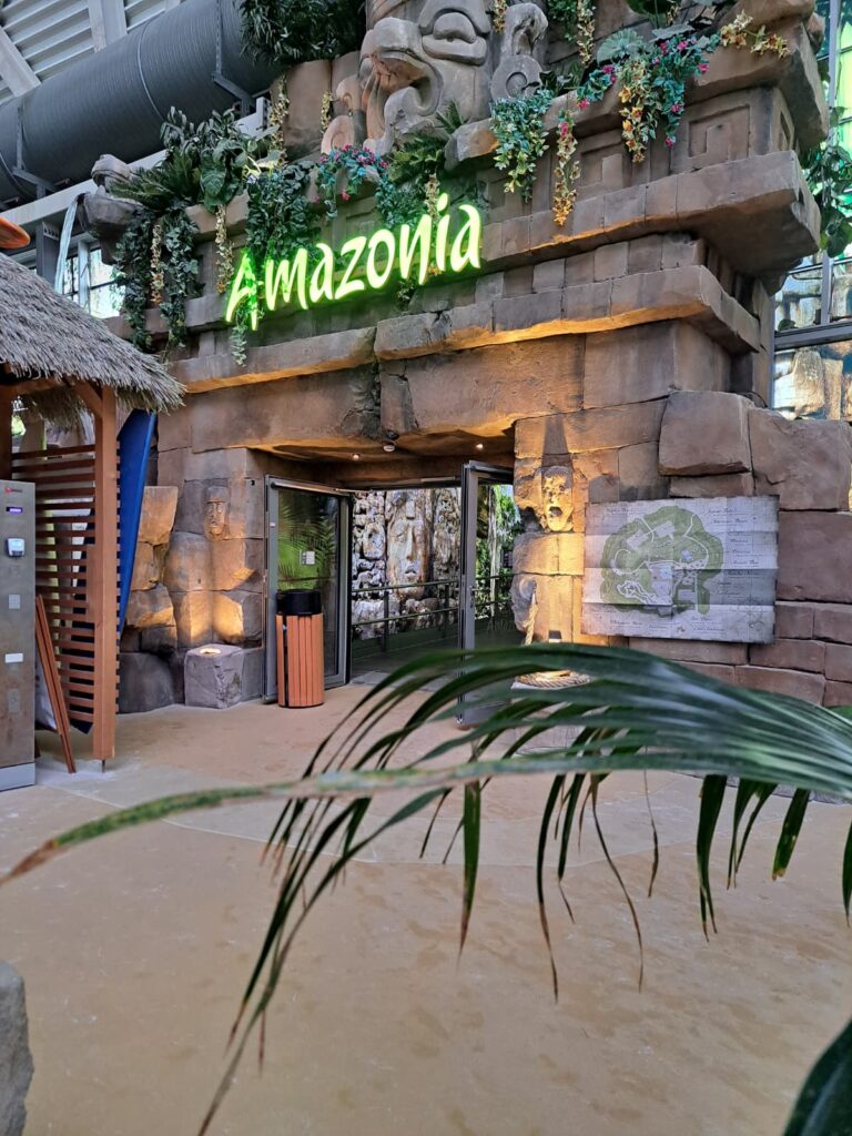🏝️ Wyspy tropikalne AMAZONIA to całoroczna powierzchnia zewnętrzna z basenem, kanał górskim o długości 250m i symulatorem surfingu (dodatkowo płatnym 20eur./30minut. Czynna codziennie od 9.00 do 17.45 (do19.45 tylko w wysokim sezonie niemieckim).