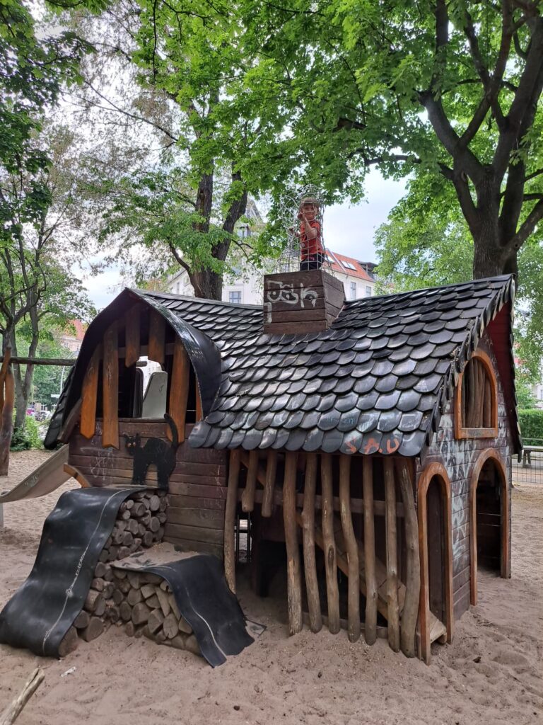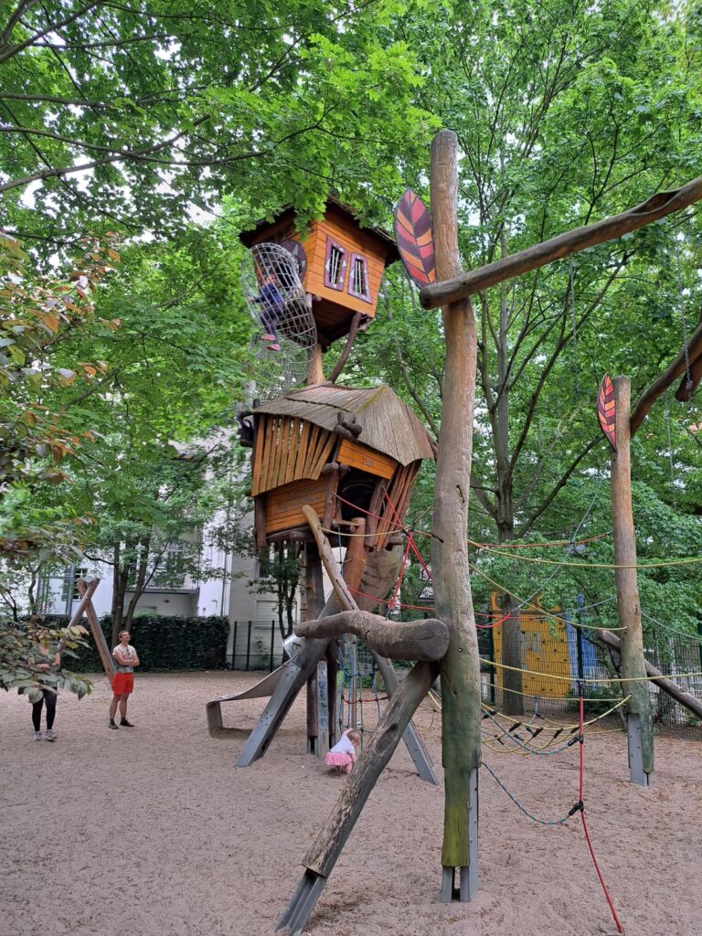 Po tym jak skończyła nam się doba na kempingu postawiliśmy zestaw na jakimś dalekim parkingu, bezpłatnie, i tam przenocowaliśmy do rana. I tu na koniec mam jeszcze jedną ciekawą historię, bo… Jadąc ostatniego dnia bezpłatnym autobusem z kempingu na baseny spotkaliśmy polską rodzinkę z dzieciakami wiekowo podobnymi do naszych i częściowo spędziliśmy z nimi dzień na basenach, a potem właśnie tą nockę na parkingu, bo też byli przyczepą. Co więcej też mieli plan jechać dalej do Berlina, więc pojechaliśmy razem 🙂 Ale okazało się, że miasto nie jest naszym ulubionym środowiskiem i po prawie 3 dniach szaleństw na basenach jesteśmy przebodźcowani i zmęczeni. Nie uśmiechało nam się chodzić po mieście i zwiedzać, spać na dziko w centrum i realizować wcześniej założony plan… Odwiedziliśmy tylko całkiem fajne muzeum Futurium i załapaliśmy się na warsztaty tworzenia instrumentów z recyklingu, które się przed nim odbywały – to było fajne doświadczenie. Potem zaliczyliśmy jeszcze wielki sklep LEGO, obiad, lody i pierwszy lepszy z brzegu plac zabaw, który był fantastyczny. Ale Berlin z tego słynie, że place zabaw w porównaniu do tych naszych polskich ma wypasione. Kiedyś tam wrócimy, ale stricte z nastawieniem na miasto i spokojną bazą do odpoczynku.