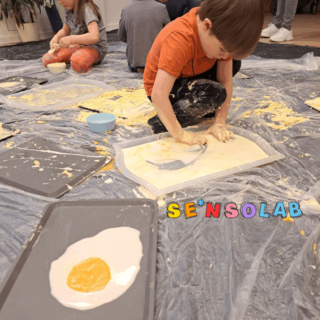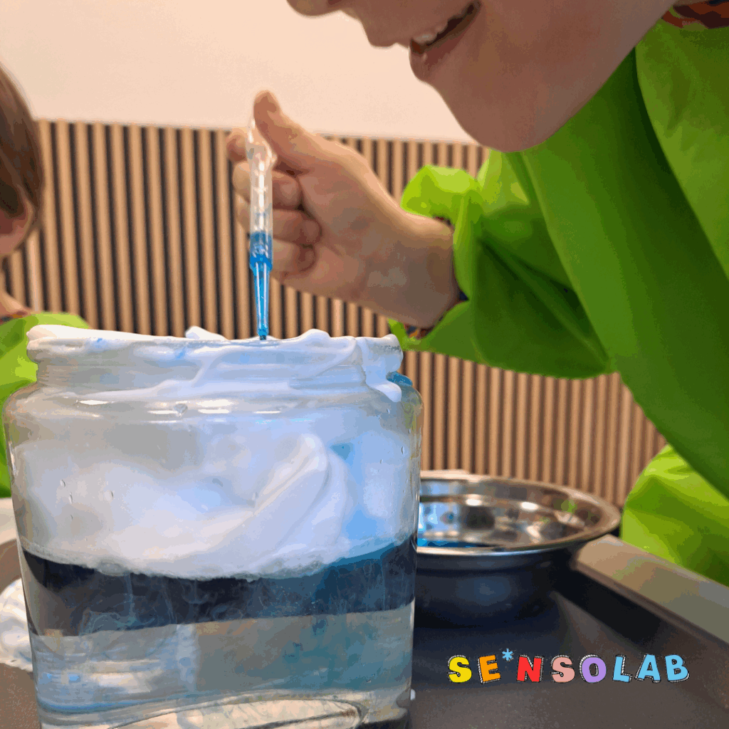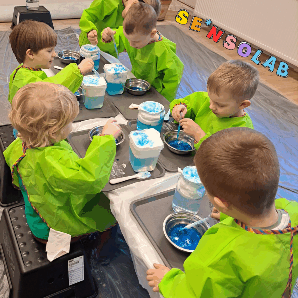 SE*nsoLAB ™ to zajęcia sensoryczno-eksperymentalne dla dzieci powyżej 4 roku życia podczas których poprzez zabawę będziemy poznawać tajemniczy świat chemii, fizyki i biologi. Dzieciaki samodzielnie wykonują eksperymenty używając do tego bezpiecznych składników dzięki czemu poznają świat barw, tajemnice wody, zjawiska przyrodnicze, fizyczne i chemiczne. Będziemy mieszać, eksperymentować i tworzyć własne masy plastyczne, pobudzać nasze zmysły, stymulować ciekawość świata i eksplorować go na maxa!