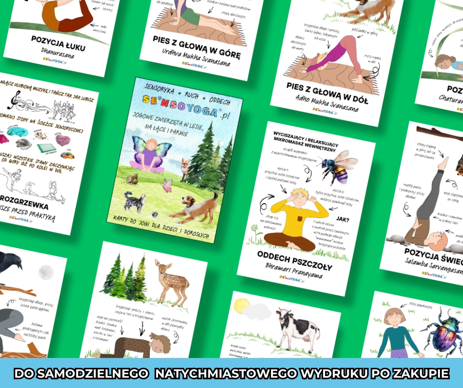 Karty do jogi dla dzieci i dorosłych „JOGOWE ZWIERZĘTA W LESIE, NA ŁĄCE I FARMIE”